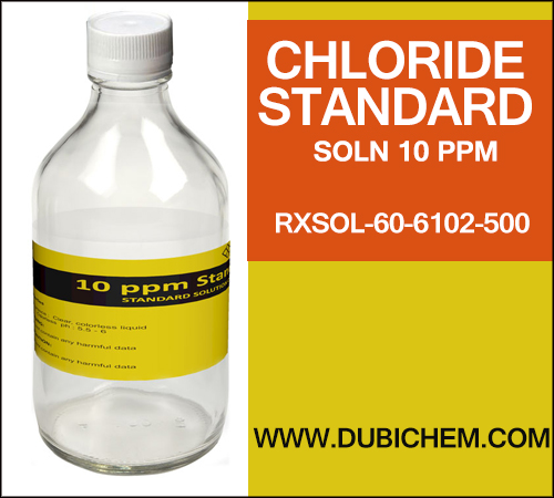 Chloride Standard Soln 10 PPM manufacturer supplier distributor in Mumbai, Kandla, Kolkata, Vizag, Chennai, India, Fujairah, Dubai UAE, Muscat Oman, Kenya Africa. Get the best quality of Chloride Standard Soln 10 PPM at a competitive price from us. We have ready stock of Chloride Standard Soln 10 PPM in India, UAE Gulf, Oman, Kenya Africa. Contact us for bulk as well as small orders.
