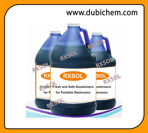 Toilet deodorizer for portable restroom tank. RXSOL restroom deodorizer is a highly concentrate odours control Blue / Green Chemicals which is free from formaldehyde-containing the element. Its multi unction mechanism acts cleaner, deodorizer as well as helps to disintegrate waste materials. This product also can be used as a Biological Toilet Cleaner or general degreasing. It contains wetting a unique biologically active liquid. biodegradable and its antifoam agents helps to use with any additional detergent system.