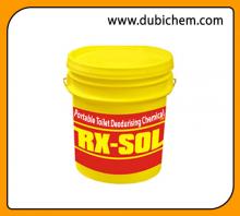Toilet deodorizer for portable restroom tank. RXSOL restroom deodorizer is a highly concentrated odors control Blue / Green Chemicals which is free from formaldehyde containing element. Its multi functional mechanism acts as a cleaner, deodorizer as well as helps to disintigreate waste materials. This product also can be use as a Biological Toilet Cleaner or general degreasing. It contains wetting a unique biologically active liquid. biodegradable and its anti foam agents helps to use with any additional detergent system.