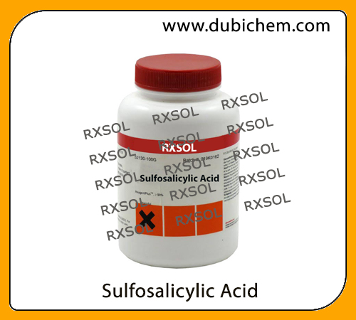 Sulfosalicylic Acid manufacturer supplier distributor in Mumbai, Kandla, Kolkata, Vizag, Chennai, India, Fujairah, Dubai, Sharjah, UAE, Gulf, Middle East, Muscat Oman, Kenya Africa. Get the best quality of Sulfosalicylic Acid at a competitive price from us. We have ready stock of Sulfosalicylic Acid in India, UAE Gulf, Oman, Kenya Africa. Contact us for bulk as well as small orders.